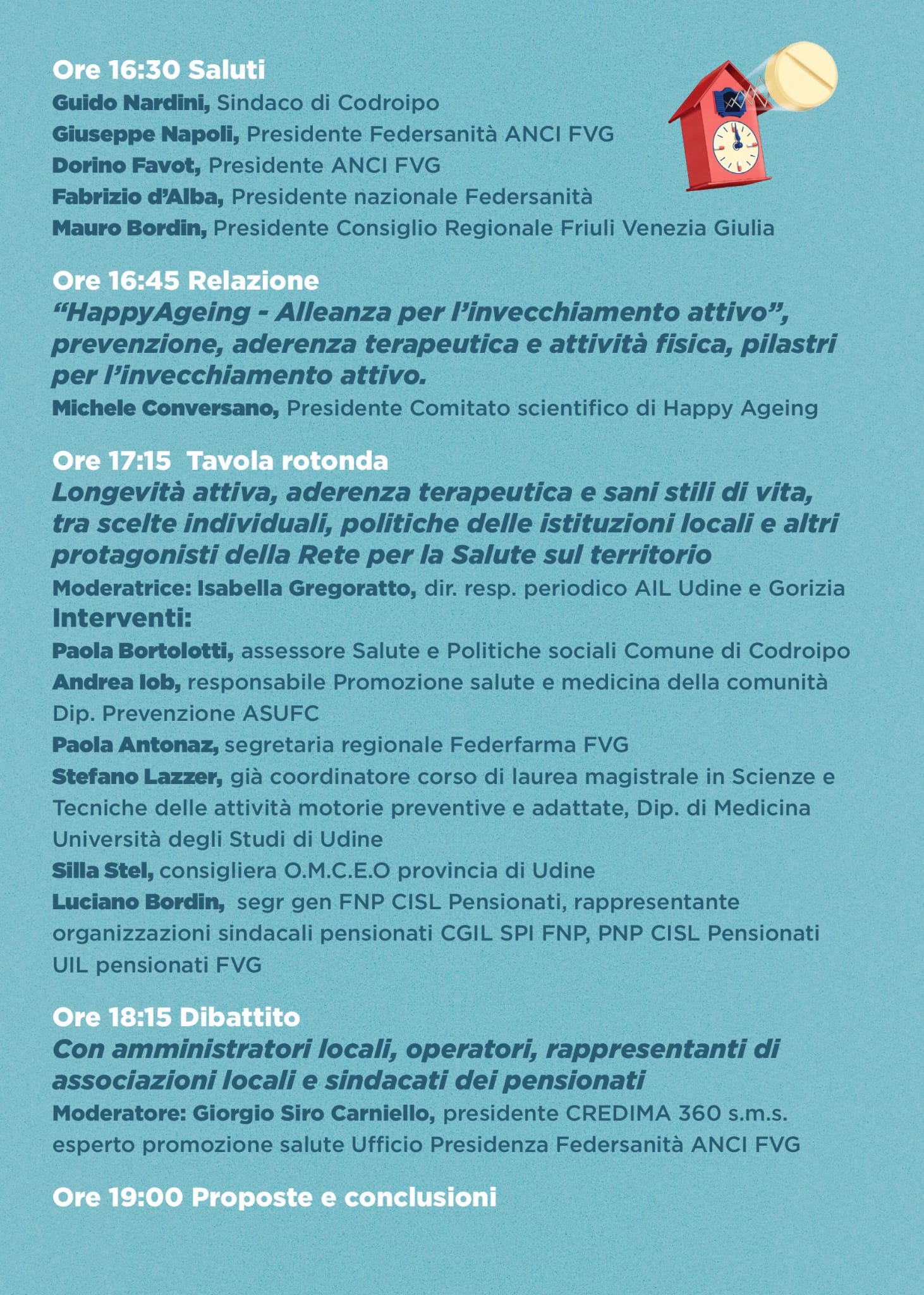 Venerdì 27 febbraio 2026, alle ore 16.30, l’Auditorium comunale di Codroipo (Via IV Novembre) ospiterà una nuova tappa della campagna “Ricordati di stare bene”, promossa da Happy Ageing in collaborazione con Federsanità ANCI Friuli Venezia Giulia.